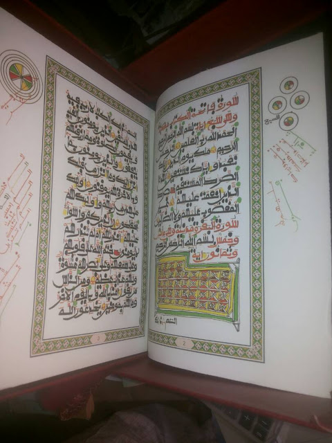 1. Qur’an (warsh) - Handwritten, with Barnawi/Kanawi calligraphic style (neatly wrapped in a leather skin-bag)